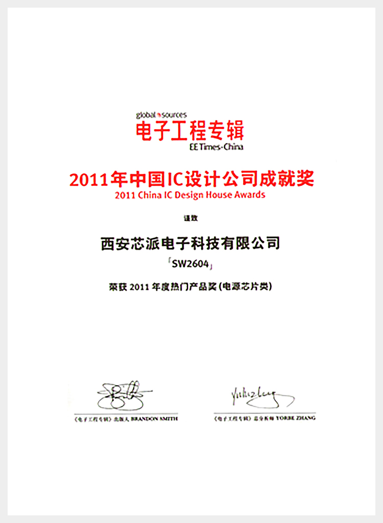 西安芯派科技榮獲2012年度最佳中國IC電子成就獎