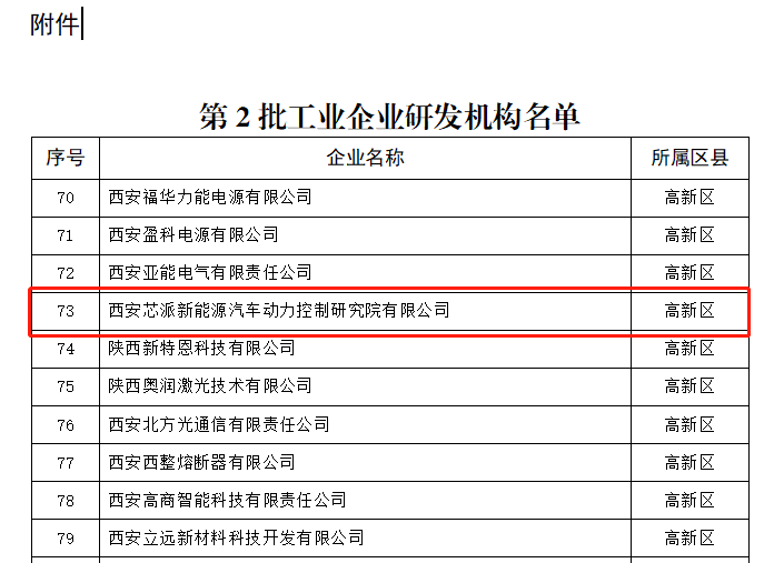 近日,經(jīng)企業(yè)申報(bào)、區(qū)縣開發(fā)區(qū)推薦、信用核查、專家評(píng)審、綜合審查及公示等程序,西安市工業(yè)和信息化局公布了第2批工業(yè)企業(yè)研發(fā)機(jī)構(gòu)名單。西安芯派新能源汽車動(dòng)力研究院有限公司通過審查,成功上榜。